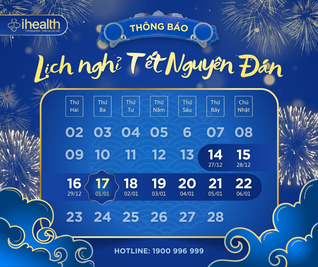 Nhân dịp Tết Nguyên Đán 2026, iHealth Việt Nam xin trân trọng thông báo lịch nghỉ Tết như sau: